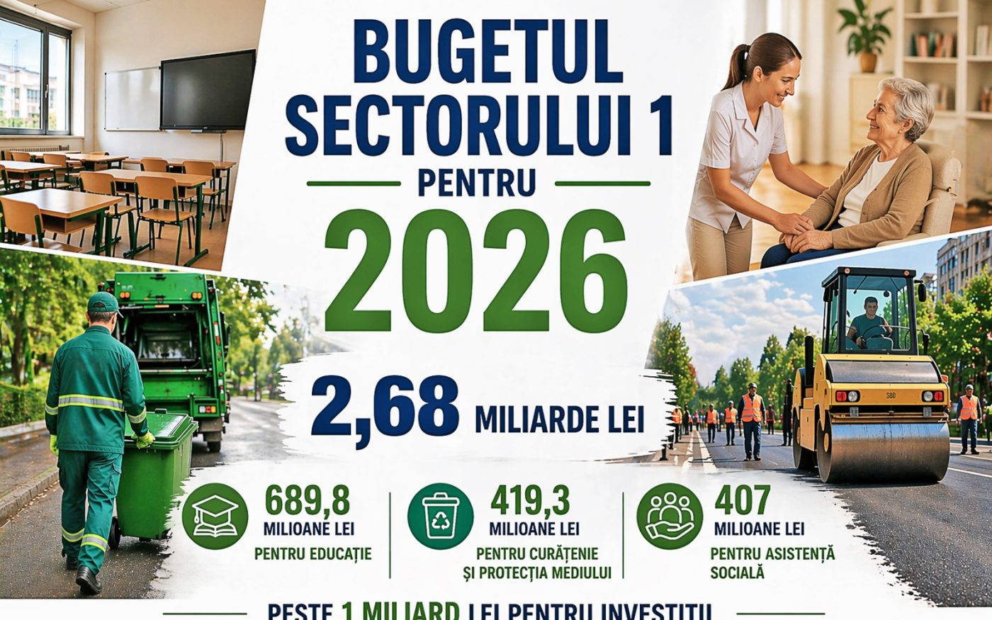 Consiliul Local Sector 1 votează joi, 23 aprilie, un buget de 2,68 miliarde lei. Față de 2025, suma crește cu zece procente, iar investițiile se apropie de pragul de un miliard de lei. Proiectul de buget este disponibil integral pe […]