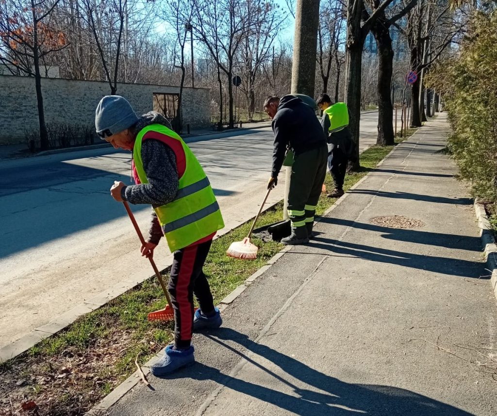 Continuăm curățenia pe spațiile verzi și începem spălatul străzilor în Sectorul 1