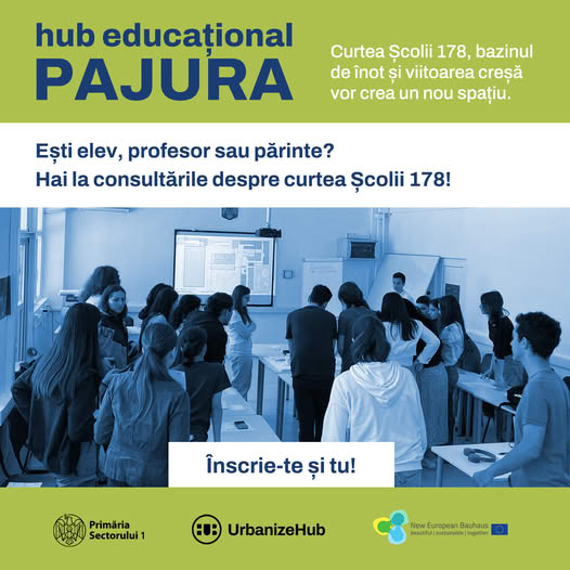 Primăria Sectorului 1, împreună cu UrbanizeHub și Școala Gimnazială nr. 178, lucrează la reamenajarea curții școlii, a bazinului de înot și a viitoarei creșe, astfel încât acestea să devină un spațiu de învățare, recreere și întâlnire pentru întreaga comunitate.